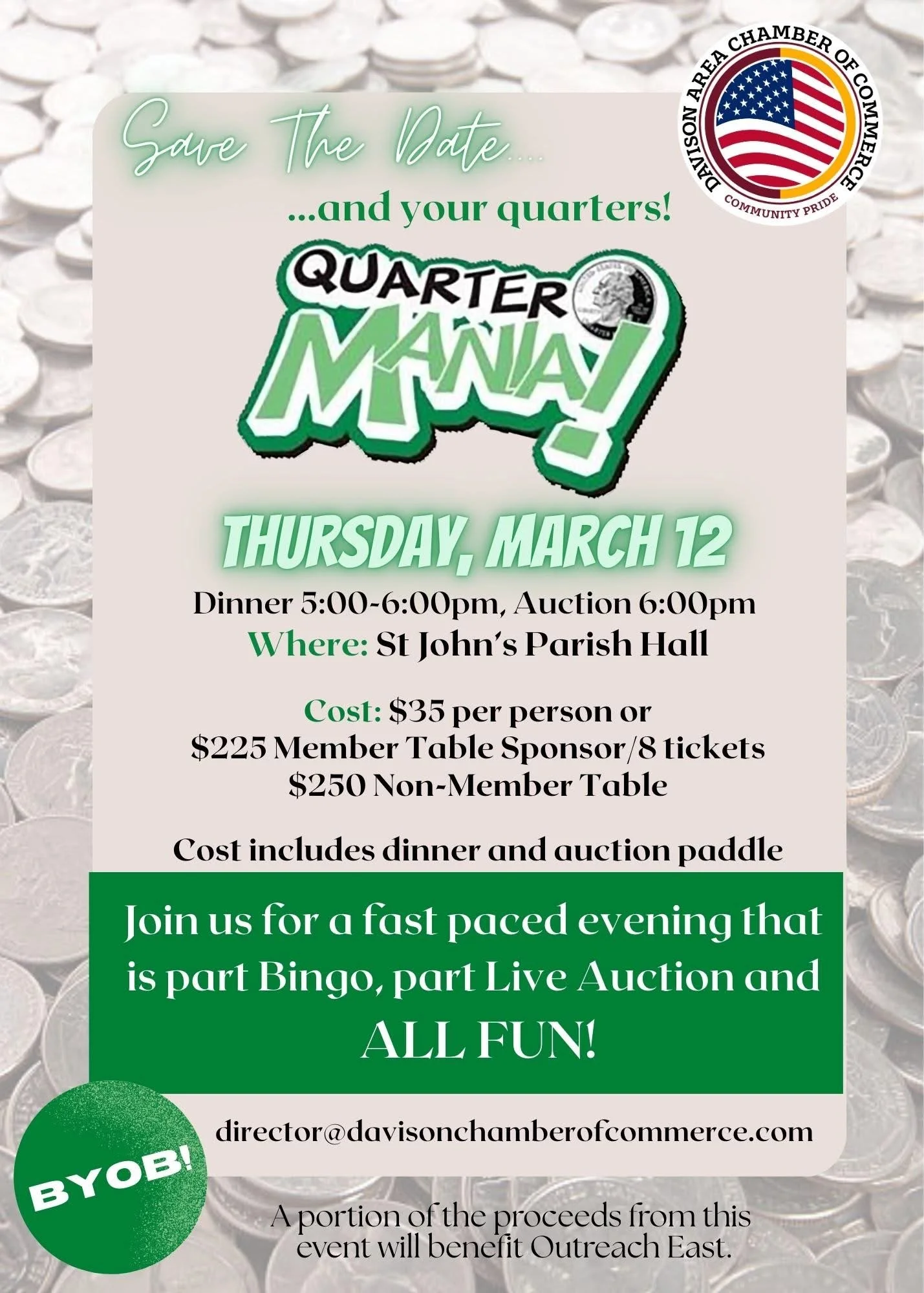 A portion of this event's profits will benefit Outreach East.